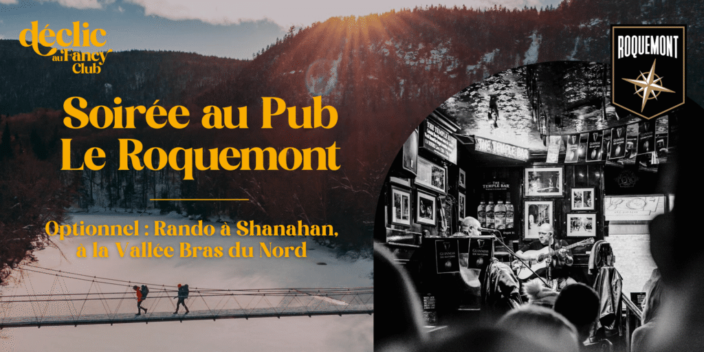 Nous vous donnons rendez-vous pour une soirée privée au Pub Roquemont, dans une atmosphère conviviale, festive et typiquement Déclic au Fancy Club.
