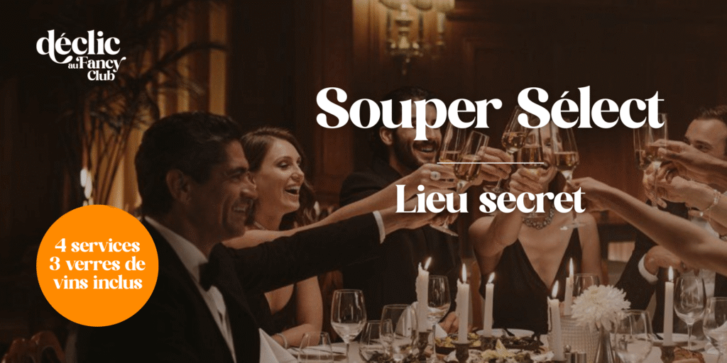 Un Souper Sélect dans un lieu raffiné, suivi d’une soirée au Bar le Clubby, dans une ambiance élégante.